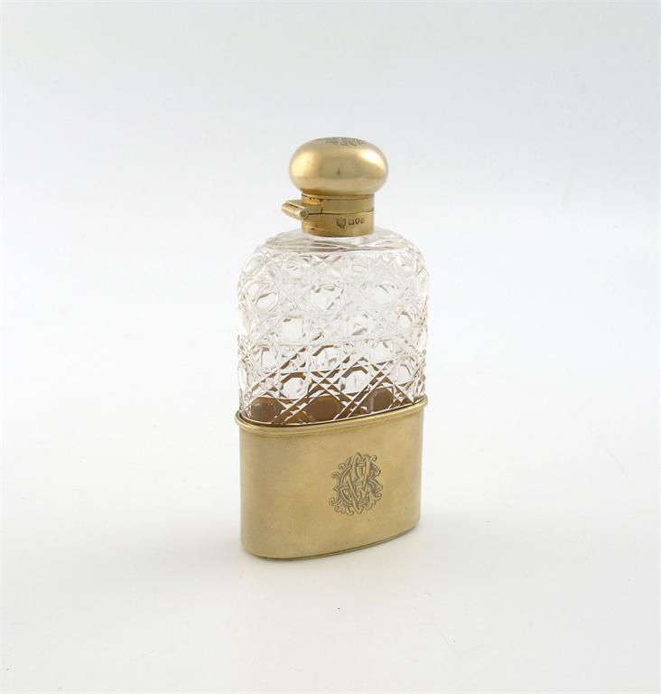 rounded rectangular form, hinged cover monogrammed, pull off drinking cup, height 14.2cm.