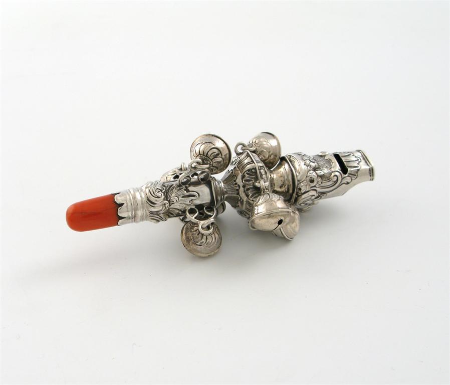 A mid 18th century silver baby's rattle