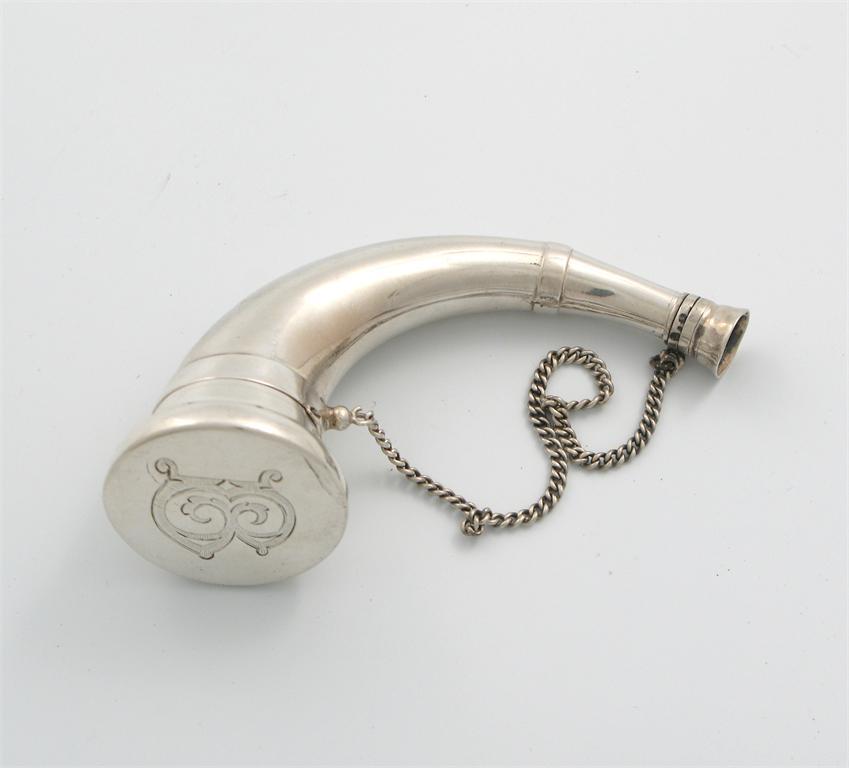 A Victorian silver novelty scent bottle vinaigrette modelled as a horn