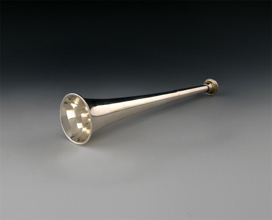 A late-Victorian silver hunting horn, by Sampson Mordan and Co, London 1897, tapering circular form, length 25.4cm, approx. weight 4oz.