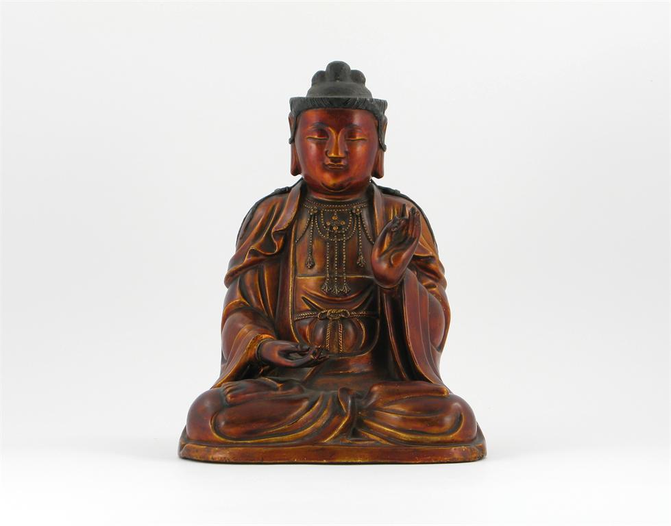 A Chinese gold lacquer seated model of a Boddhisattva