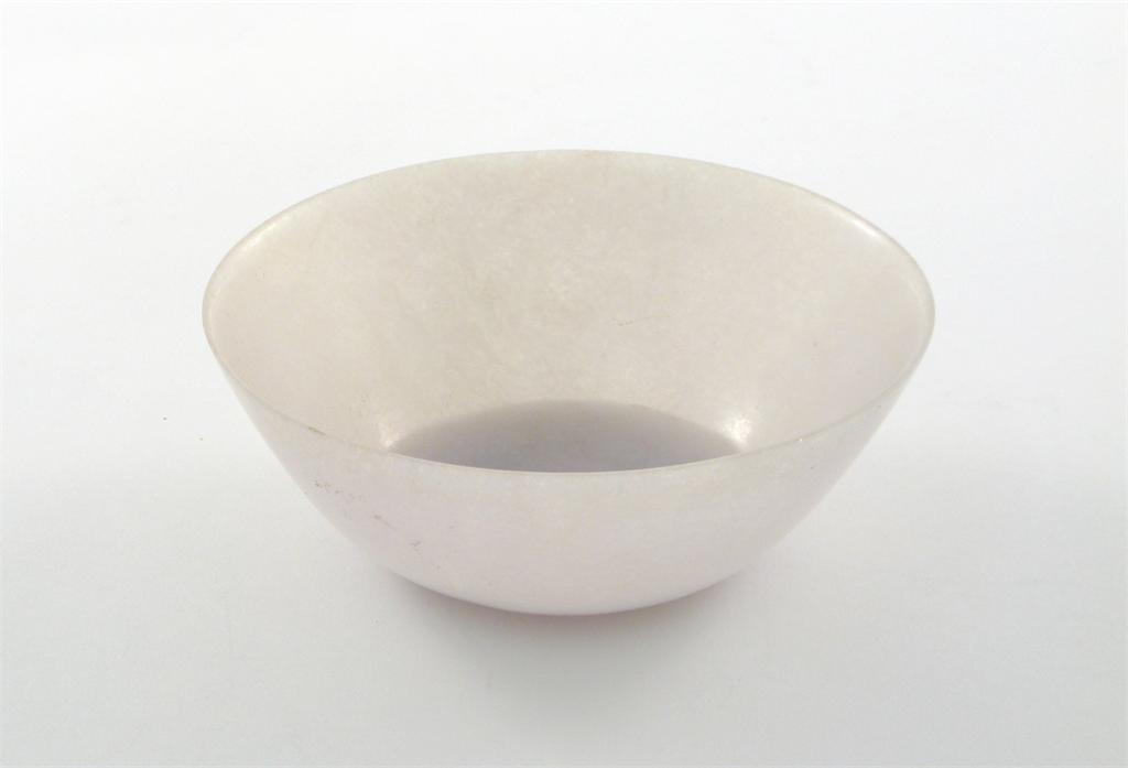 A Chinese white jade bowl, the translucent stone finely carved and with an inset foot, 18th / 19th century, 12.5cm.