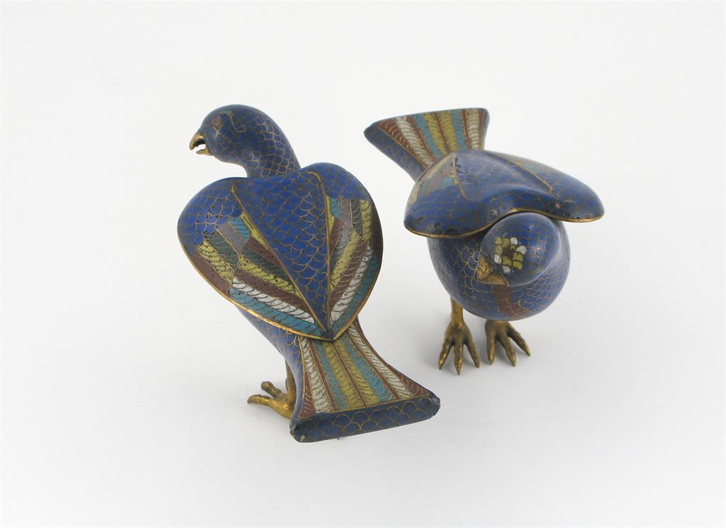 An unusual pair of Chinese cloisonné birds
