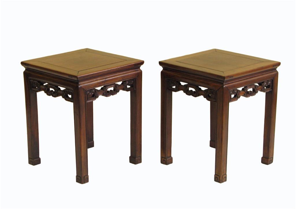 A pair of Chinese hardwood square stools, with openwork frieze of a central ruyi-head, 2nd half 19th century, 50.8cm high. (2)