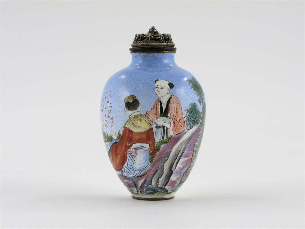 A Chinese Canton enamel ovoid snuff bottle