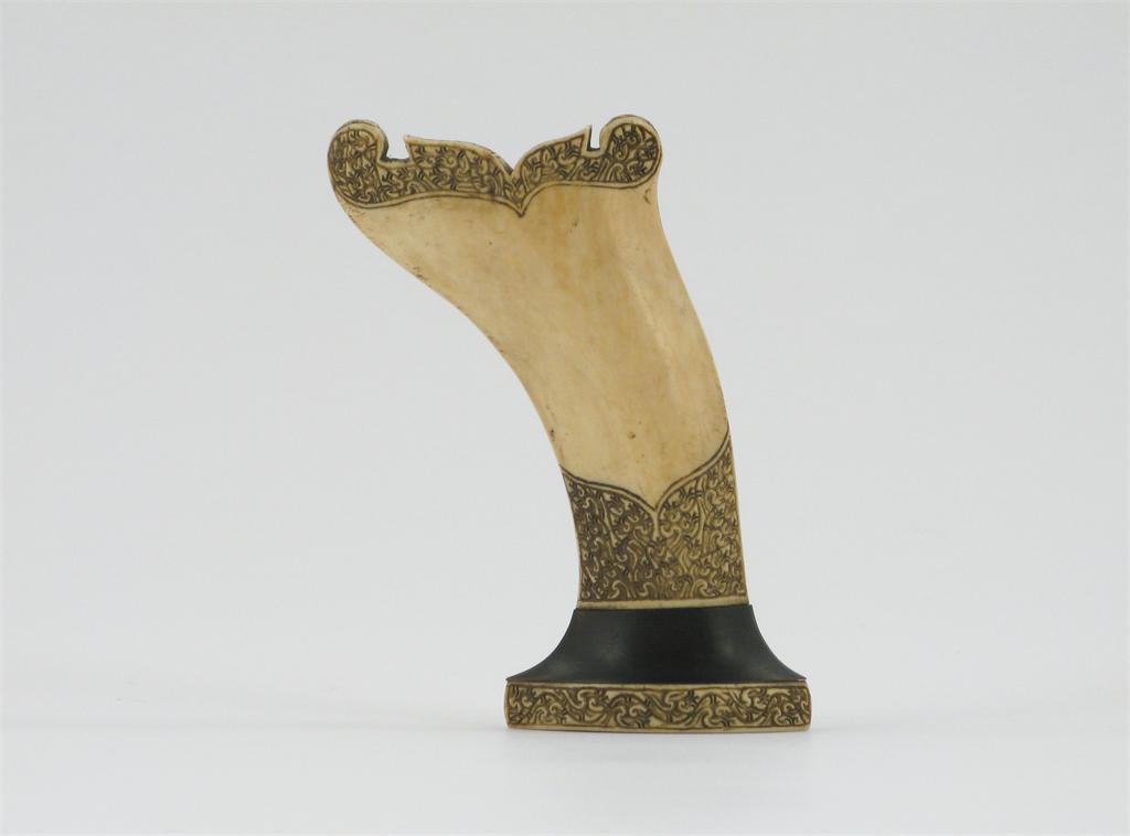 A Javanese ivory kris handle, finely carved with scrollwork, 18th / 19th century, 12.7cm. Provenance: Ernest Ohly collection.