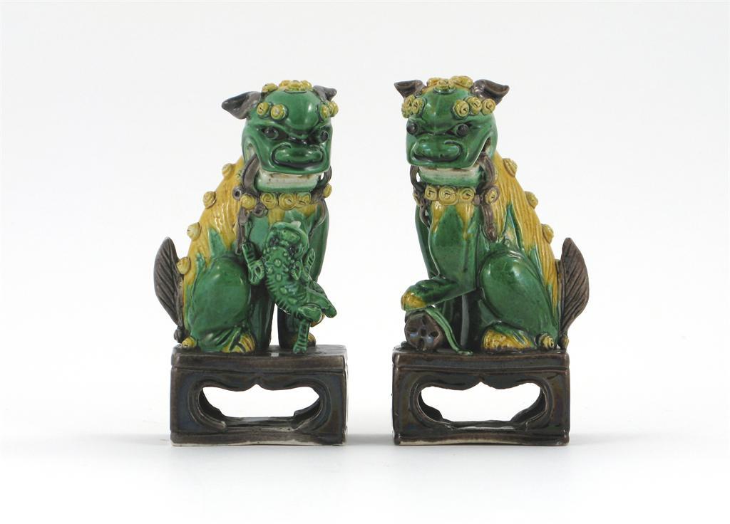 A pair of Chinese famille verte models of Buddhist lion dogs
