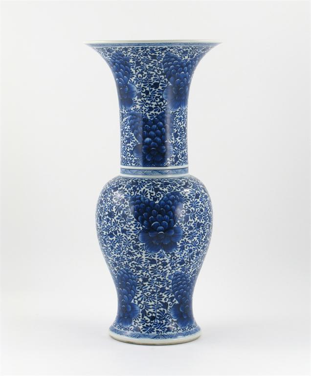A good Chinese blue and white yen yen vase, painted in a vibrant bright blue with an all over peony design, unmarked, Kangxi 1662-1722, 47cm.