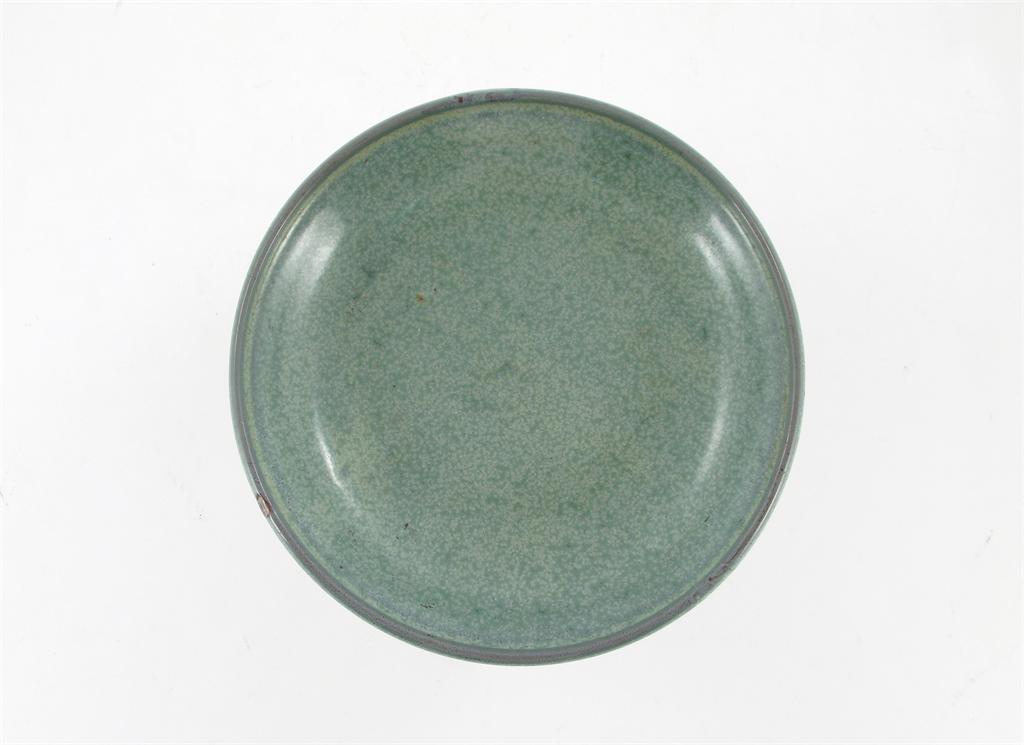 A Chinese saucer dish, decorated with a mottled greenish robin's egg glaze, probably 19th century, 20cm.