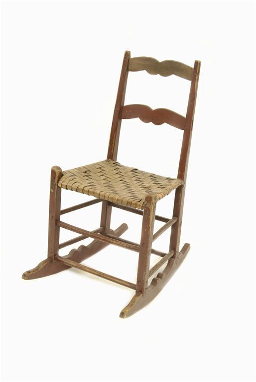 A 19th century Canadian red painted rocking chair, with a woven seat.