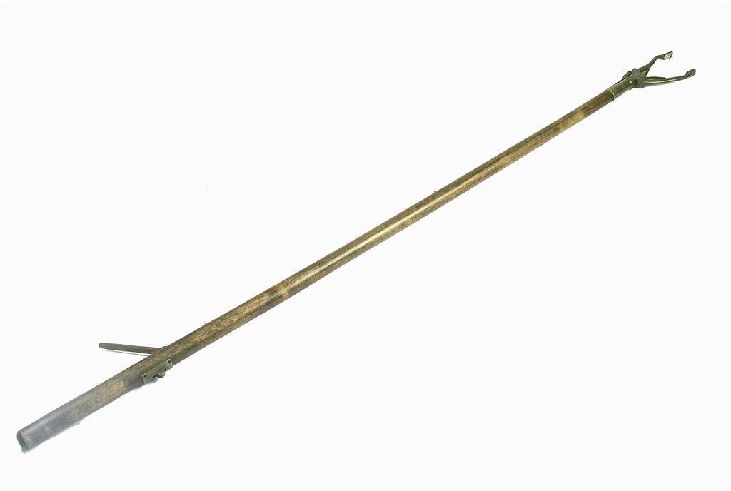 A 19th century gilt brass mounted book grab, with a sycamore shaft, stamped 16, 48in (122cm) l. Gilt rubbed.
