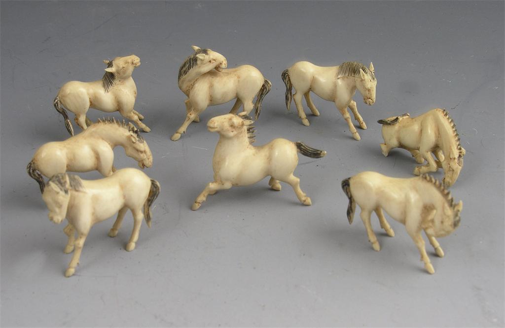 A Chinese carved ivory set of the eight horses of Wu Mang, the tallest 1.5in (3.8cm) h. One leg broken and present. (8)