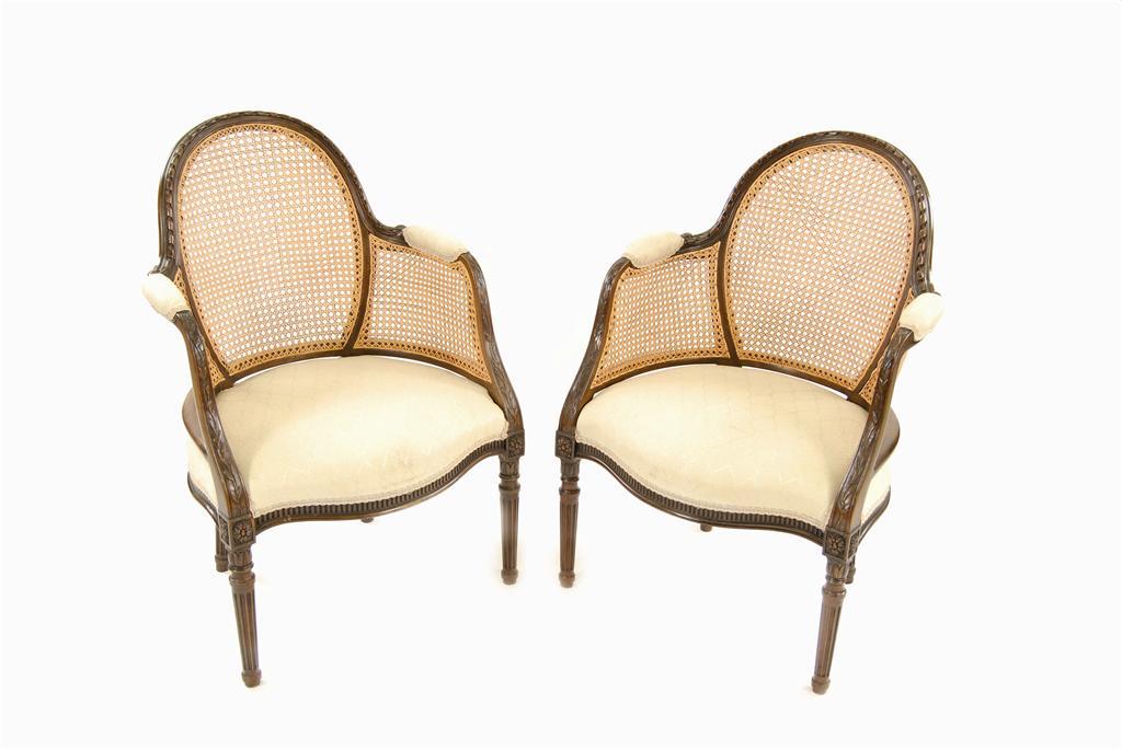 A pair of carved mahogany bergeres