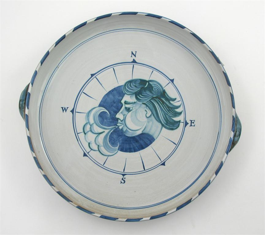 Alan Caiger-Smith (b.1930) a large twin-handled bowl the well painted with the east wind