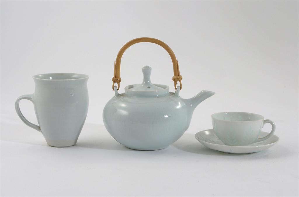 Mary Rich (born 1940) a porcelain teapot and cover, glazed white, a Mary Rich mug and an Arabia part coffee set impressed marks teapot 8cm. high