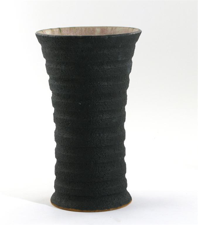 Sotis Filippides (b.1963) a flaring stoneware vase, ribbed form covered in a matt volcanic glaze impressed artist seal mark 28cm. high