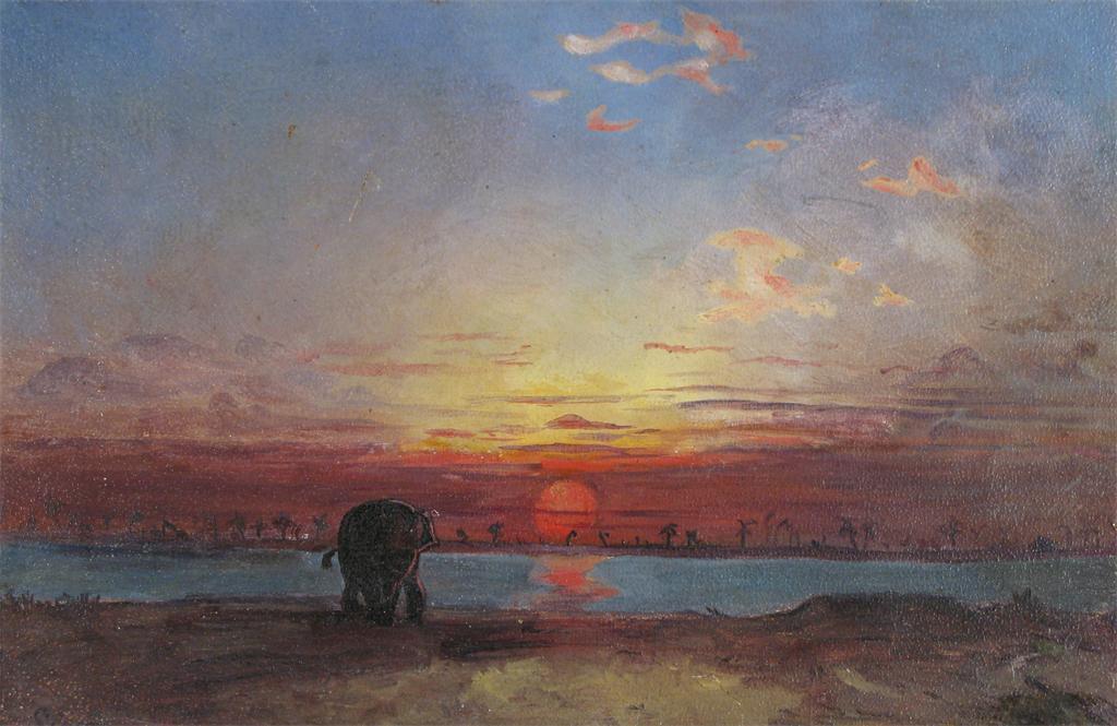 After Edouard Hildebrandt Sunset on the Chow Praya River, Siam Titled Oil on paper 20 x 30cm; 8 x 12in
