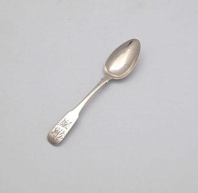 Alexander Macleod, a silver Fiddle pattern teaspoon, circa 1830-35, script initials 'GMK' over 'RG', length 14cm, approx. weight 0.4oz.