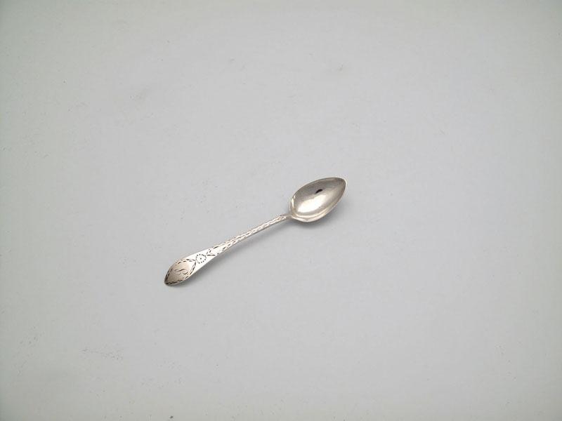 Benjamin Lumsden, a silver Bright-cut old English Point pattern teaspoon, circa 1790, script initialled 'S', length 13.8cm, approx. weight 0.3oz.
