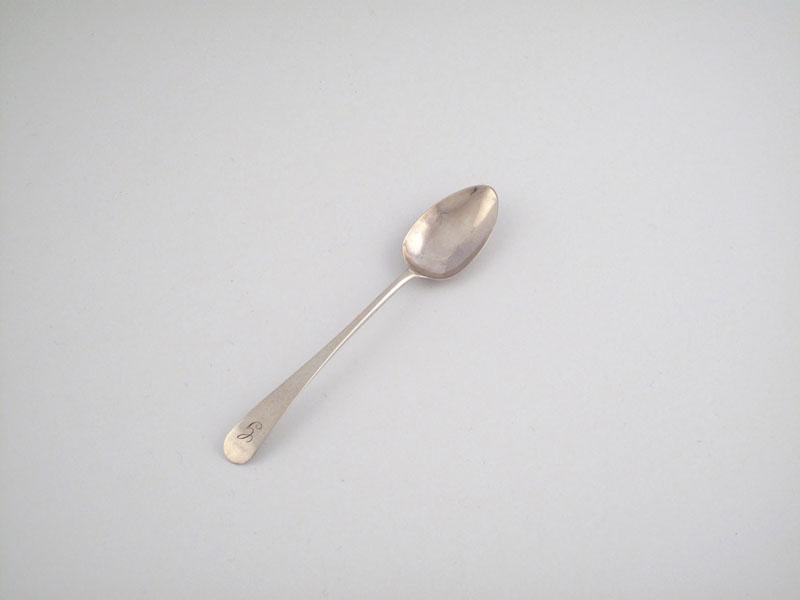 William Hannay, a silver old English pattern teaspoon, circa 1800, the terminal initialled 'G', length 13.2cm, approx. weight 0.2oz.