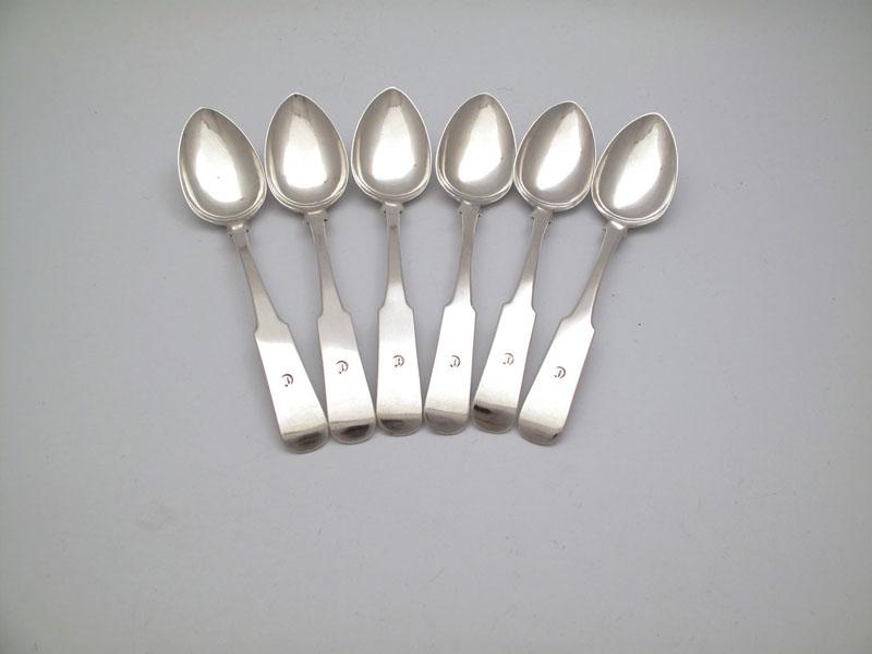 John McQueen, a set of six silver Oar pattern tablespoons, Banff circa 1825-30, the terminals initialled 'C', length 12.3cm, approx. weight 12oz. (6)