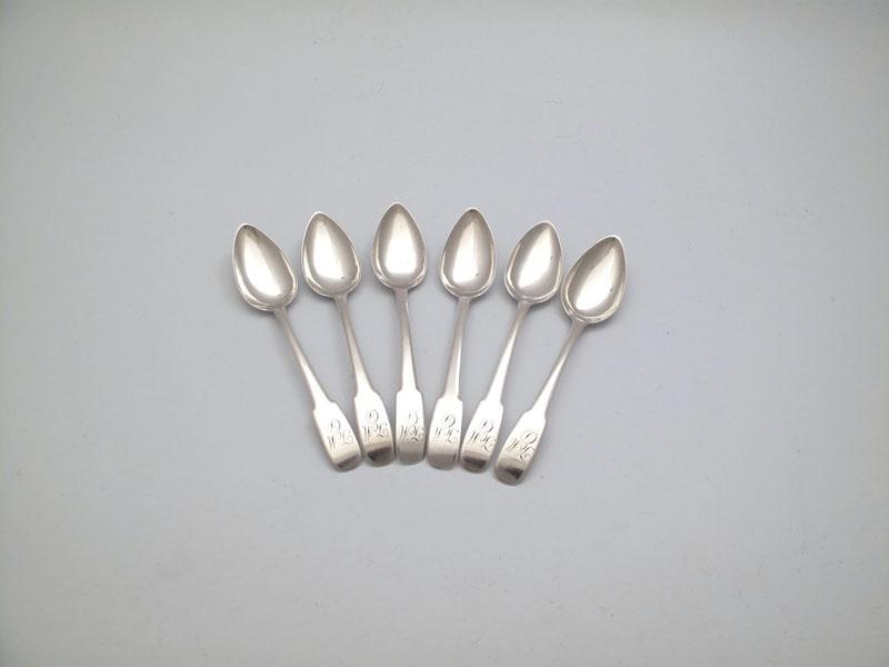 Joseph Pearson, a set of six silver Oar pattern teaspoons, Dumfries, circa 1810-20, the terminals script initialled 'JM' over 'D', length 14.2cm, approx. weight 4oz. (6)