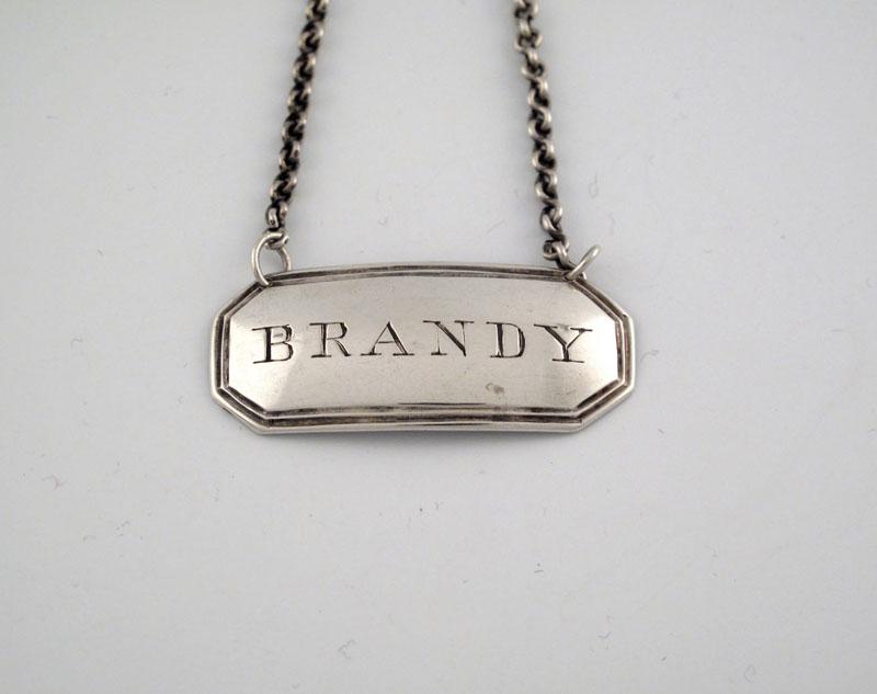 William Jamieson, a silver wine label, Aberdeen circa 1830, rectangular form, canted corners, reeded borders, incised, 'BRANDY', length 4.4cm, approx. weight 0.3oz.