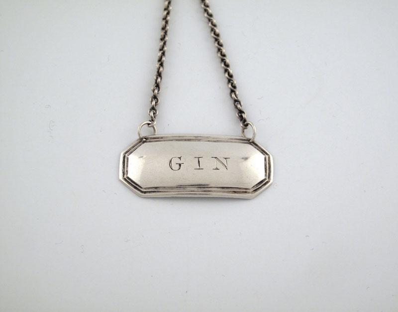 William Jamieson, a silver wine label, Aberdeen circa 1830, rectangular form, canted corners, reeded border, incised 'GIN', length 4.4cm, approx. weight 0.3oz.
