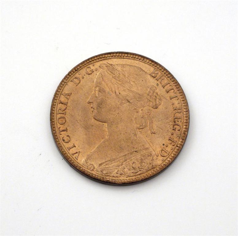 Victoria, bronze Penny, 1860, first year of issue, toothed border, signed L C Wyon on obverse (BMC [Peck] 1632; S 3954). Uncirculated or virtually so and retaining full lustre.