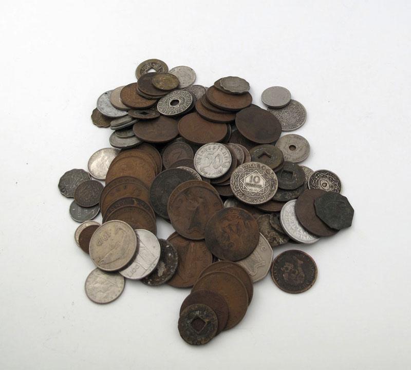 British and World silver coinage, 19th - 20th century, approx 20 ozs, mostly fair to fine, a few better pieces; with a quantity of world coinage in base metals. (lot)