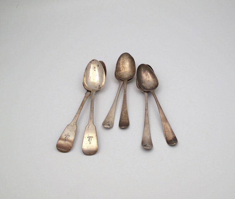 A small collection of six antique silver tablespoons,