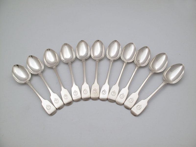 A set of eleven Victorian provincial silver Fiddle pattern dessert spoons