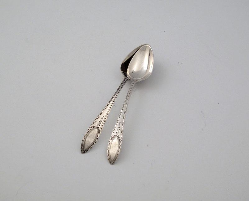 A pair of George III Irish provincial silver Bright-cut Old English Point pattern tea spoons,