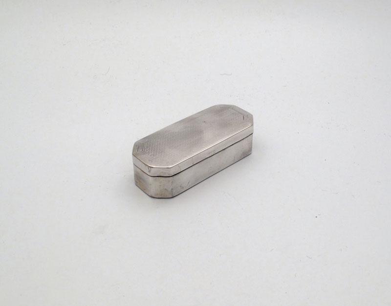 An Edwardian silver trinket box, by Deakin and Francis, Birmingham 1907, rectangular form, canted corners, engine-turned decoration, length 9.6cm.