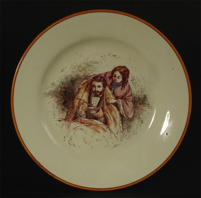 A Wedgwood earthenware plate by Emily Lessore entitled 'The Petter Husband' painted in colours...