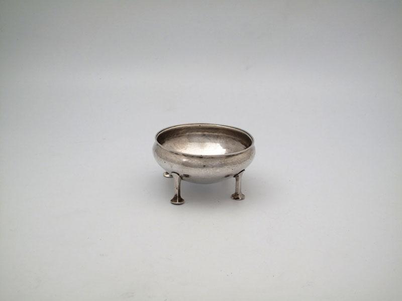 By A. E. Jones, an Edwardian silver bowl, Birmingham 1904, circular form, spot-hammered decoration, on four spindle legs, diameter 11cm, approx. weight 4oz.