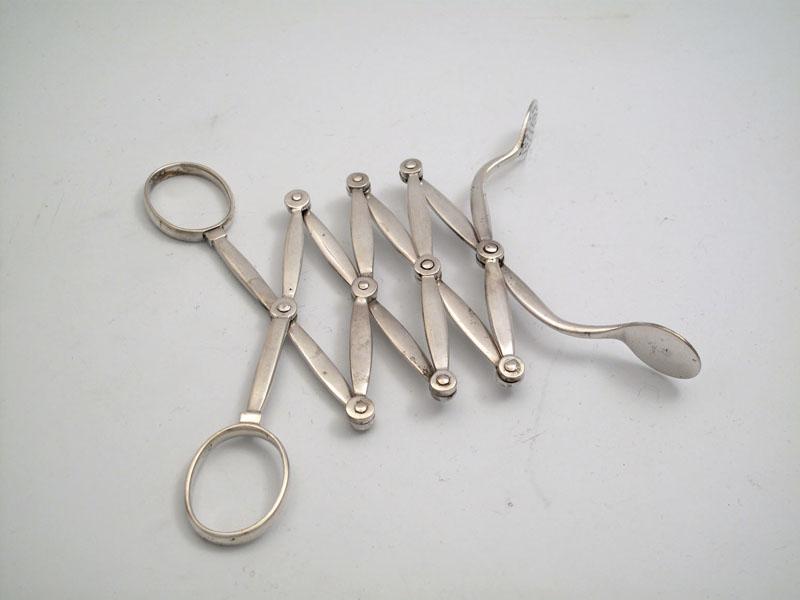 A rare pair of George III silver articulated tongs