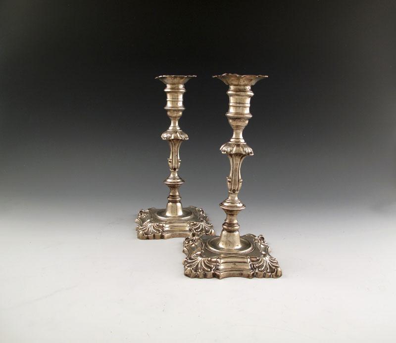 A pair of George II silver candlesticks,