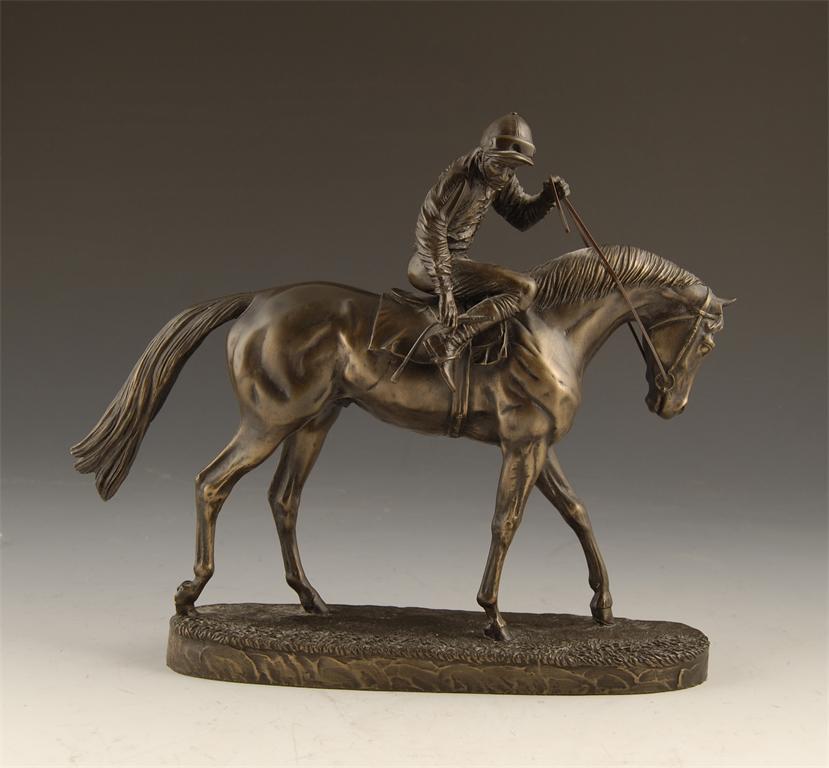 David Geenty (1945-). A cold cast resin and bronze finish group of a horse and jockey