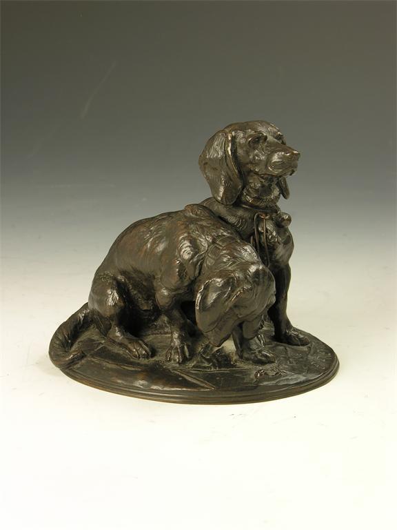 Emmanuel Fremiet (1824 - 1910) Ravageot et Ravageole, Chiens Bassets, signed and stamped 387, bronze, 5.75in (14.5cm) h.