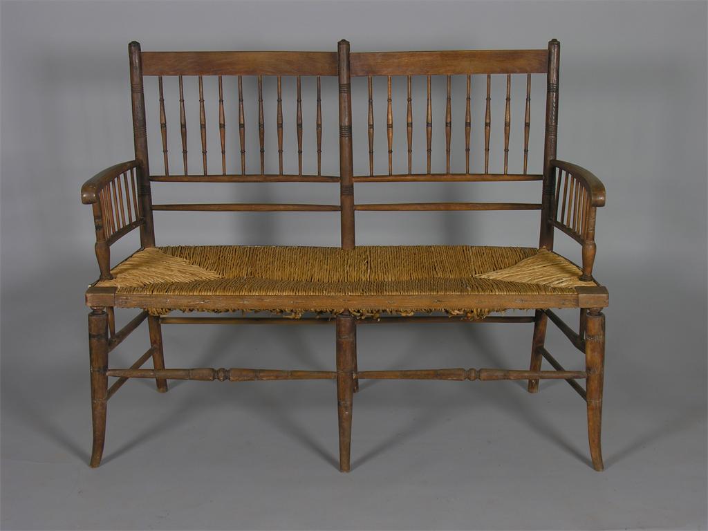 A 'Sussex' style settle in the manner of Morris & Co, unmarked 109cm. wide.