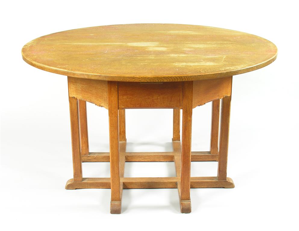 An Arts and Crafts oak table circular top