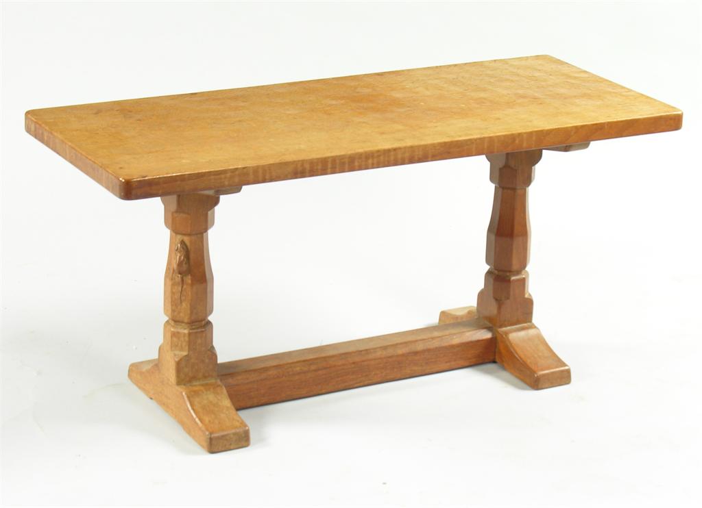 A Robert 'Mouseman' Thompson, Kilburn, oak side table rectangular section, with carved carved mouse signature 91cm. wide