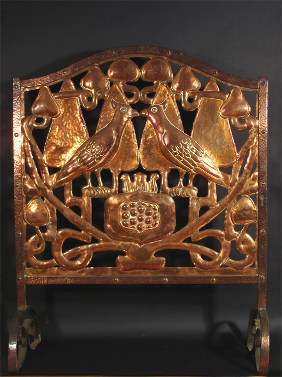 An attractive Arts and Crafts pierced copper fire screen showing the influence of C F A Voysey