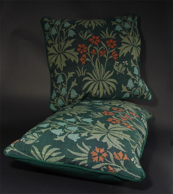 'Carnation' two sections of Morris & Co woven woollen fabric made into cushions designed by J H...