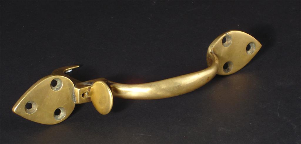 A brass door latch in the style of C F A Voysey 21.5cm. long