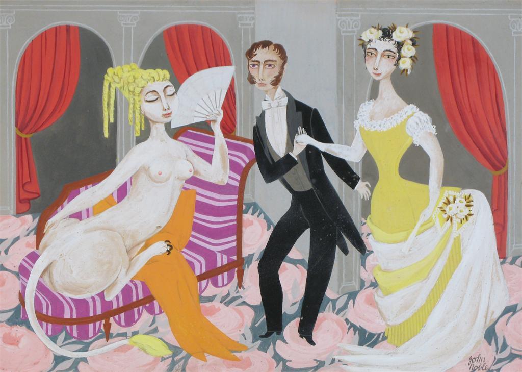 John Noble (20th century): Theatrical figures, signed, gouache, 26 x 36cm (10.25 x 14.25in).