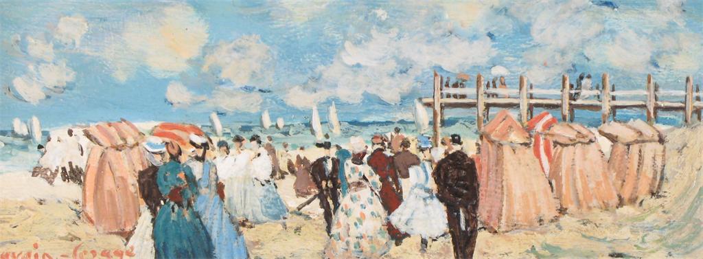 Pierre Lessage called Davain-Lessage (French b.1908): Figures on a French beach and a companion