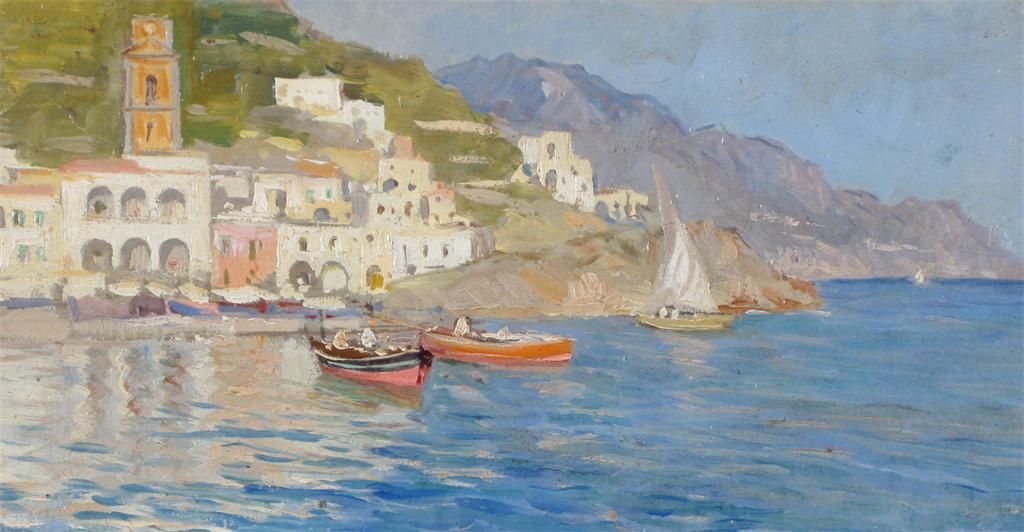 Italian School c.1900: The Amalfi Coast, oil on paper, 12 x 23.5cm (4.75 x 9in).