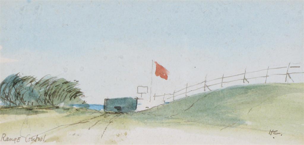 Hugh Casson (1910-1999): Range Control, signed and titled, watercolour, 6.5 x 13.5cm (2.5 x 5.25in).
